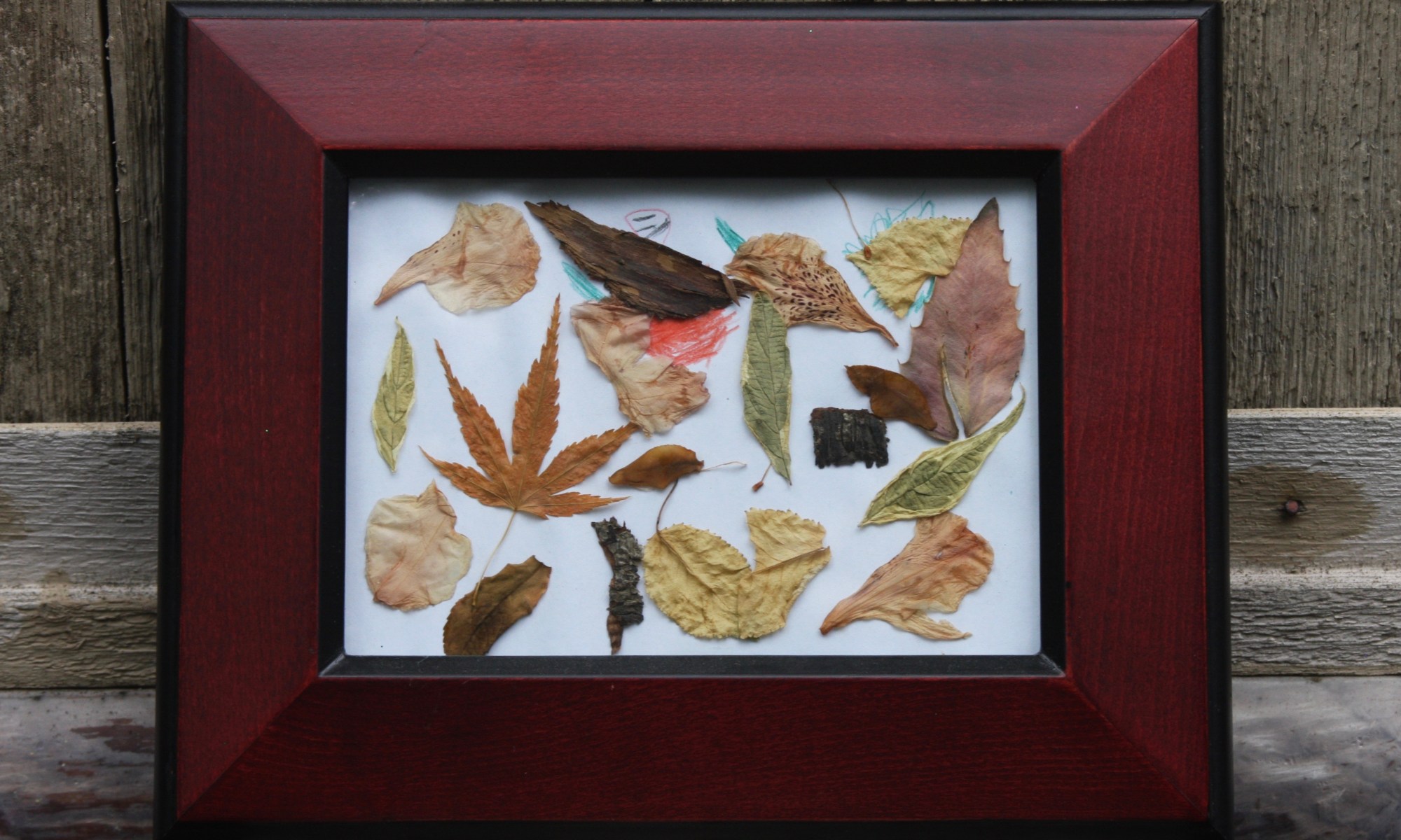 First, we were at the playground in the park, and we were collecting leaves to make this picture. Later that day, I buckled my wrist by falling from the monkey bars.