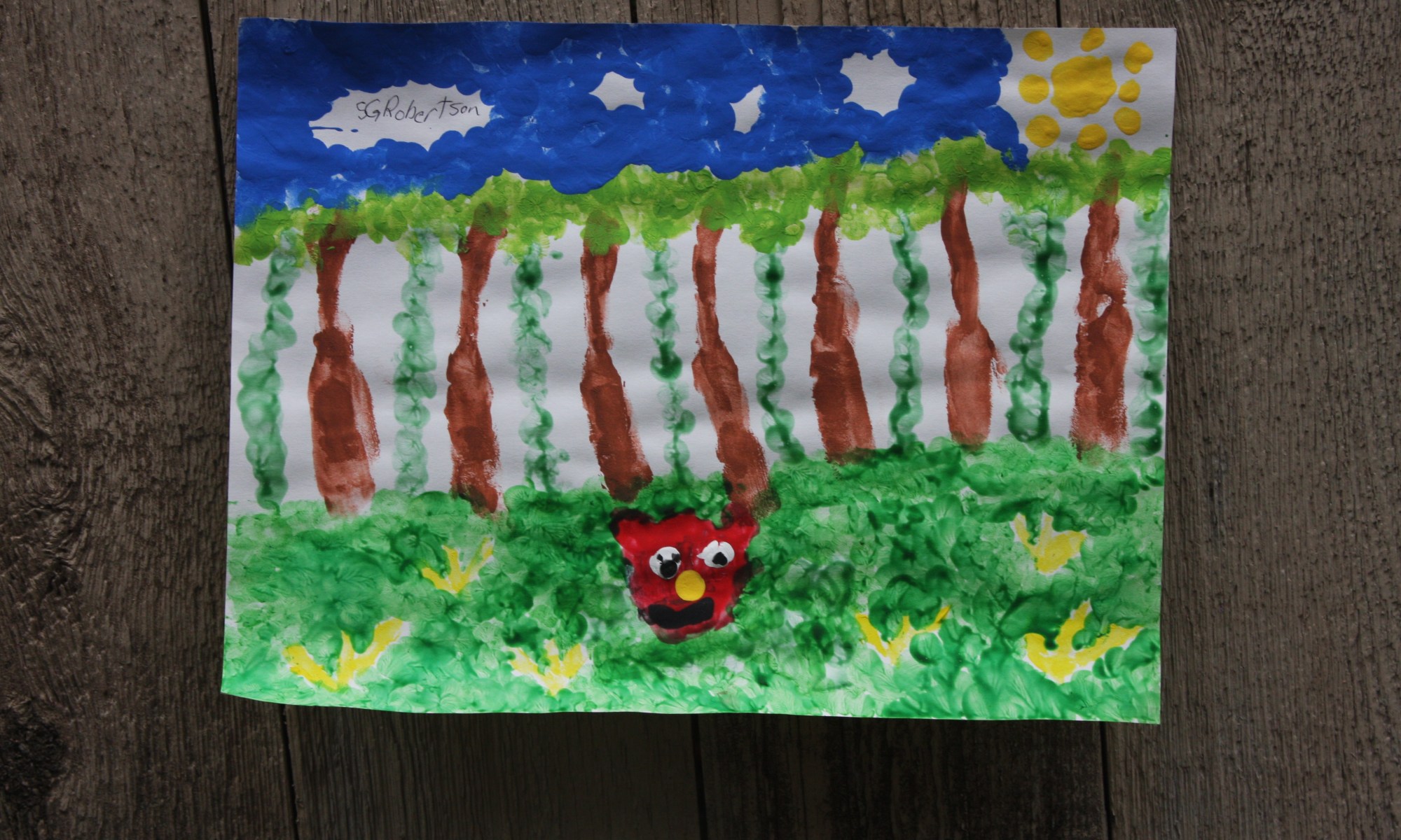 This idea came from an arts n’ crafts TV show, “Mister Maker,” and it is all finger-painting.