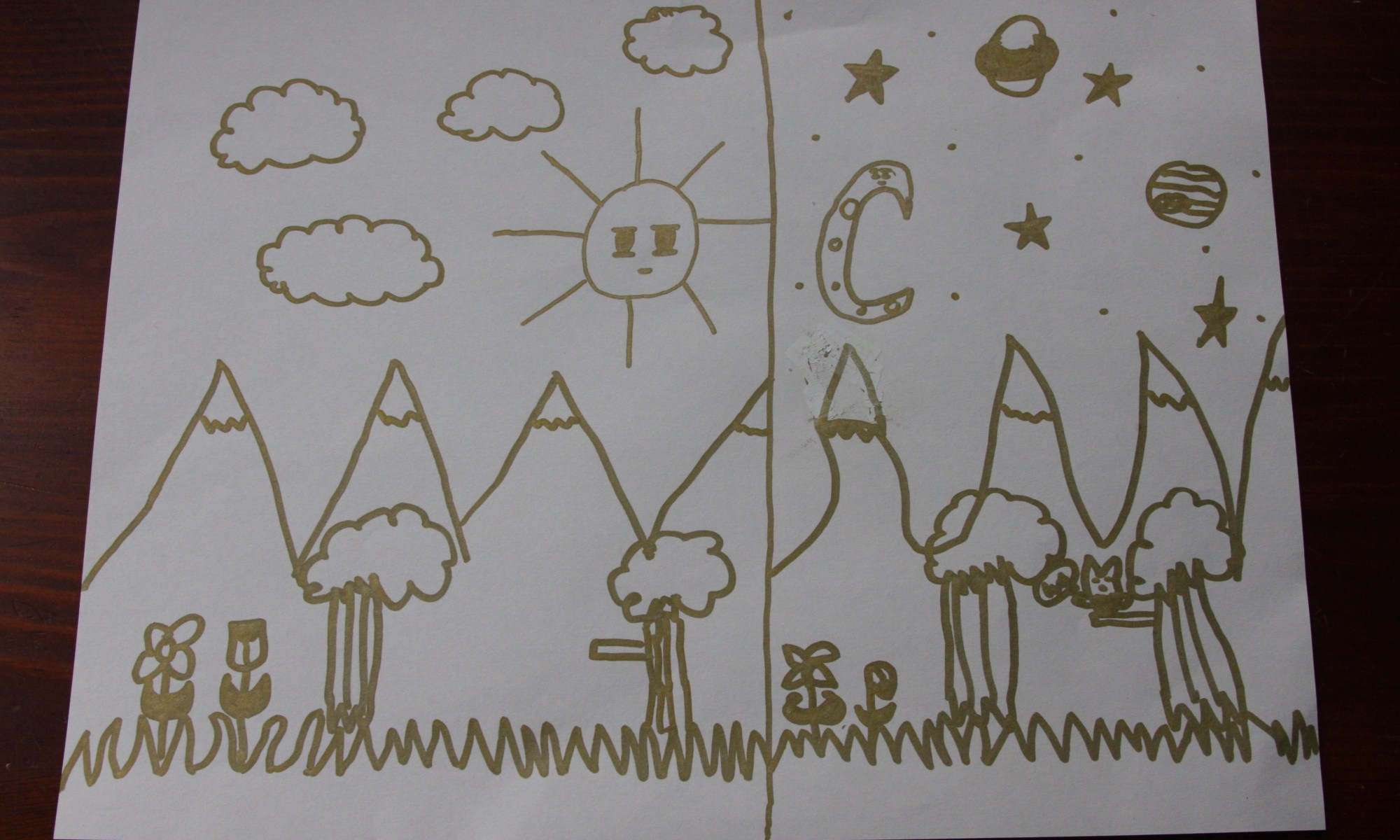 Posted on July 5, 2019July 5, 2019 by Scott Robertson, PhDDay ‘n Night This picture is called Day ‘n Night. It’s made out of a blank piece of paper and a gold metallic marker I got from my Grandma. I’m an artist just like her! Check out her blog too! 🙂 Click here to return to the menu. Share this: Click to share on X (Opens in new window) X Click to share on Facebook (Opens in new window) Facebook Click to share on WhatsApp (Opens in new window) WhatsApp Click to email a link to a friend (Opens in new window) Email Like Loading... Related